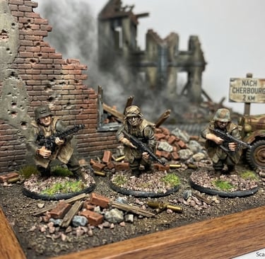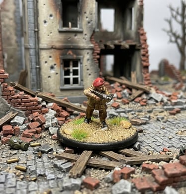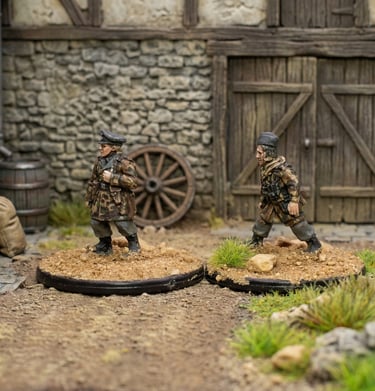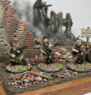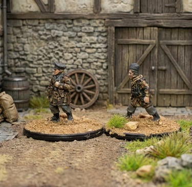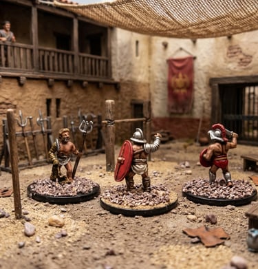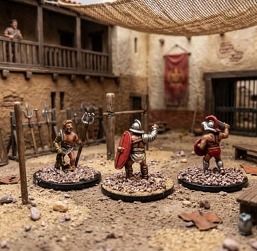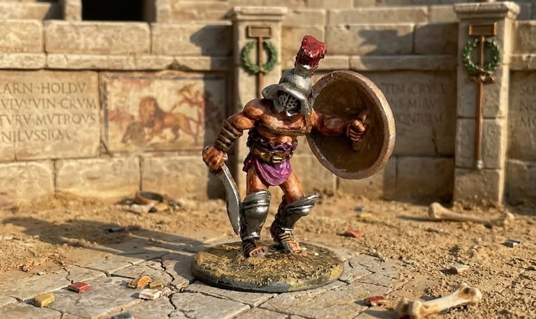 Miniatures posed in action-packed stances, capturing movement and personality with expertly blended colors and textures.